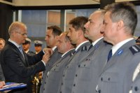 W katowickiej komendzie wojewódzkiej odbyła się przedwczoraj uroczystość wręczenia awansów i odznaczeń. Policjanci i pracownicy korpusu służby cywilnej odebrali je z rąk wojewody śląskiego Piotra Litwy oraz komendanta śląskiej policji nadinsp. Jarosława Szymczyka. Nominacje na wyższe stopnie służbowe otrzymało 25 mundurowych.