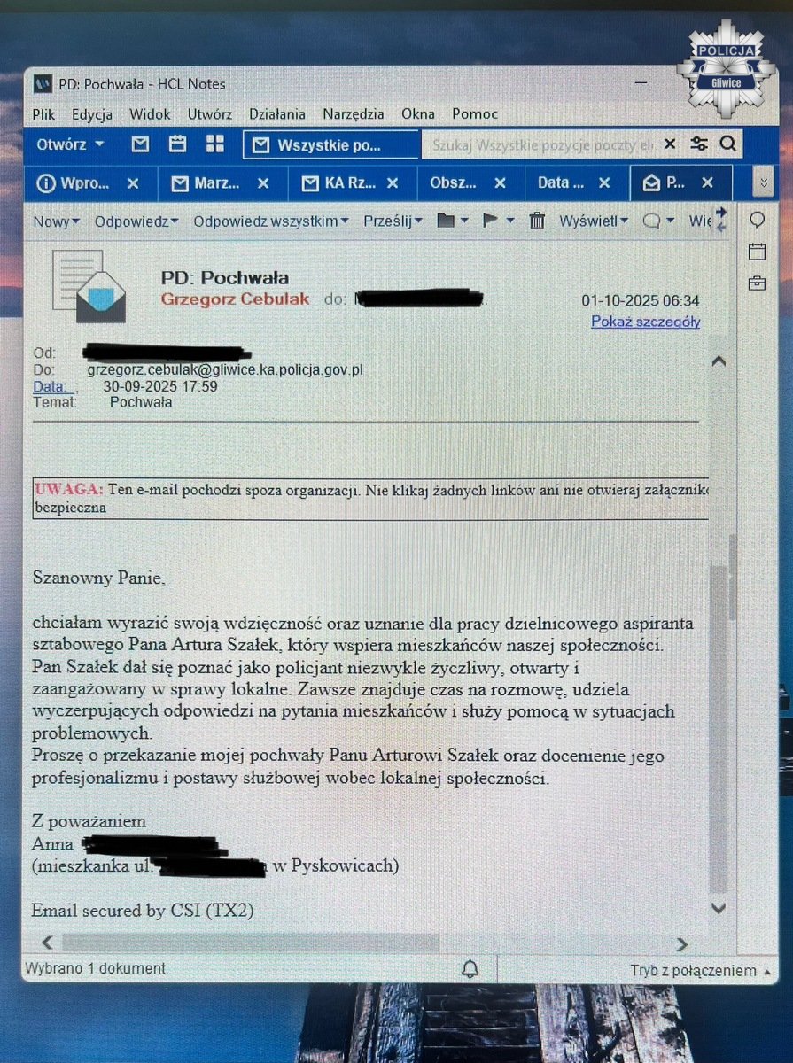 Słowa uznania dla gliwickich policjantów