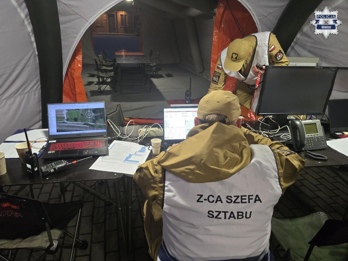 Gliwicka Policja odpowiadała również za koordynację działań poszukiwawczych osób, które oddaliły się z miejsca zdarzenia. W akcję zaangażowano Górnośląską Grupę Poszukiwawczo-Ratowniczą, 131 Batalion Lekkiej Piechoty z Gliwic oraz jednostki Ochotniczej Straży Pożarnej. Wykorzystano także specjalistyczny sprzęt – m.in. quada OSP Pławniowice i drony OSP Gierałtowice oraz OSP Niewiesze, które wspierały działania w terenie leśnym i trudno dostępnym.