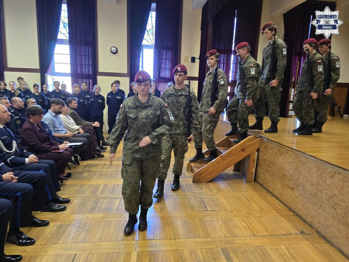 W wydarzeniu uczestniczyli przedstawiciele gliwickiej policji na czele z Zastępcą Komendanta Miejskiego Policji w Gliwicach mł. insp. Januszem Górką. Obecni na wydarzeniu przekazali młodzieży gratulacje oraz życzenia wytrwałości, sukcesów i satysfakcji z obranego kierunku kształcenia. Podkreślili także, że zainteresowanie służbą i wartościami obywatelskimi to najlepsza inwestycja w przyszłość – zarówno zawodową, jak i osobistą.