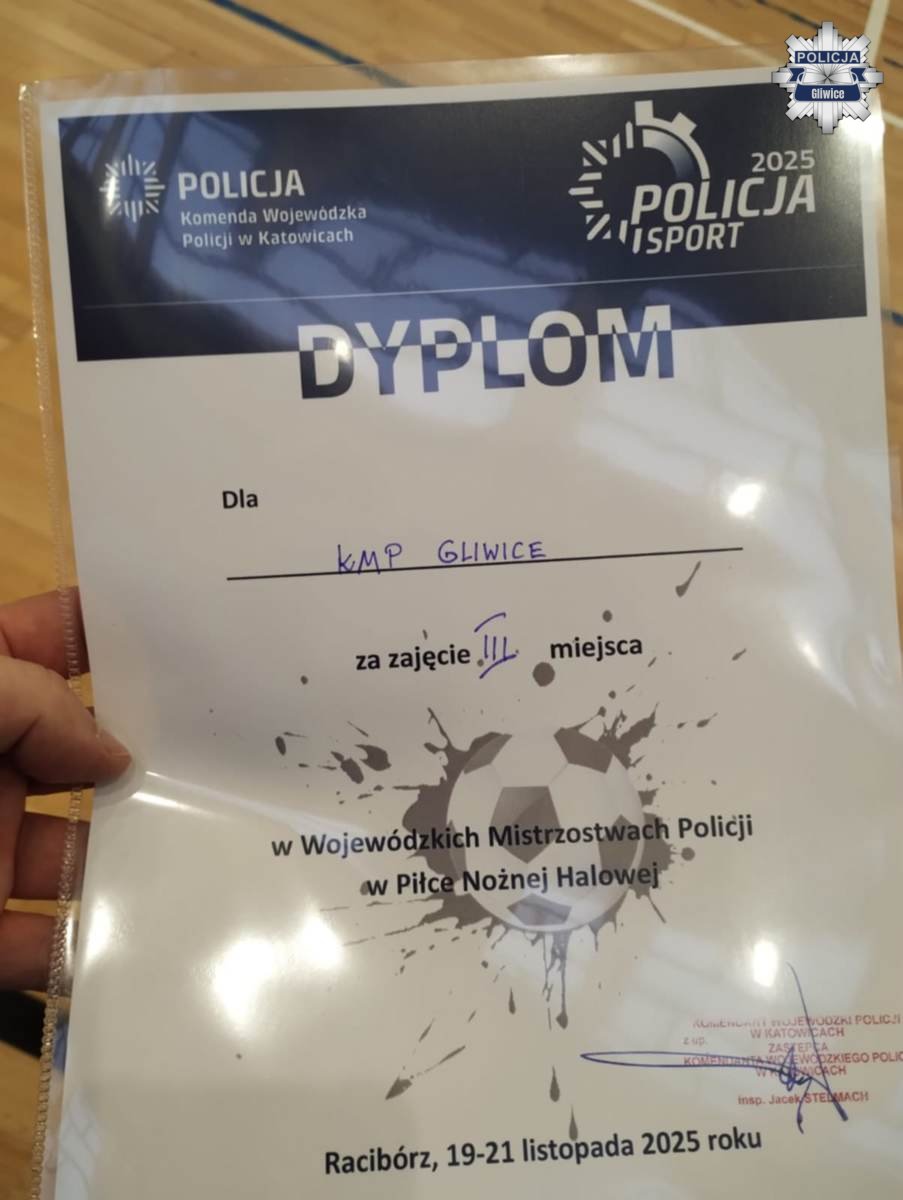 Reprezentacja Komendy Miejskiej Policji w Gliwicach po raz kolejny udowodniła, że policyjna służba i sport idą u nas w parze. Podczas Wojewódzkich Mistrzostw Policji w Piłce Nożnej Halowej, które odbyły się 20–21 listopada 2025 r. w Raciborzu, nasi funkcjonariusze wywalczyli znakomite 3. miejsce, plasując się w ścisłej czołówce 24 drużyn z całego województwa śląskiego.