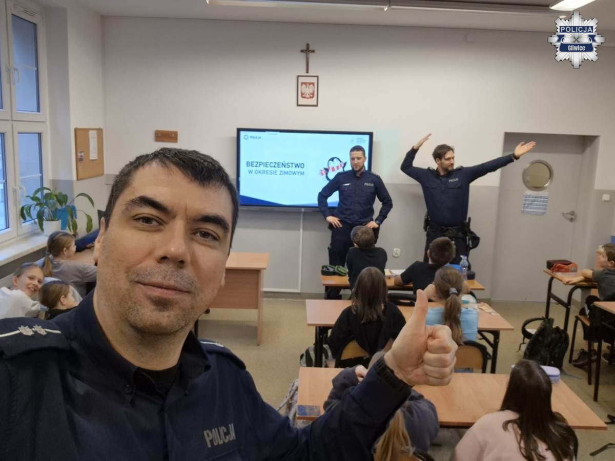 Bezpieczeństwo w czasie ferii zimowych – spotkanie policjantów z uczniami SP nr 17 w Gliwicach